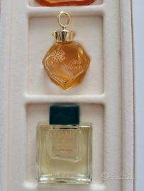 Scatola originale (alcune piccole macchie del tempo ) con 4 miniature di profumi Van Cleef & Arpels, vintage anni 80 , i profumi non sono mai stati usati e sono First, Van Cleef, Miss Arpels e Tsar.