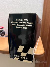 Vendo come da titolo Minichamps 1:12 Repsol Honda Team di Alexander Barros anno 2004. Confezione e modello si presentano in perfette condizioni.