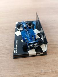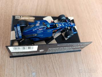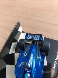 Modello in scala 1/43 della Prost AP03 prodotto da Minichamps. Conversione custom in livrea Gauloises con detail-up. Il modello si presenta in buone condizioni da esposizione. Le decal sono state applicate con cura. Possibili piccole imperfezioni dovute alla lavorazione artigianale. L’ala posteriore presenta una deformazione visibile (vedi foto), senza compromettere l’esposizione. Ideale per collezionisti, diorami, oppure per ulteriori miglioramenti. • Scala: 1:43 • Marca: Minichamps • Pilota: Jean Alesi • Decal custom • Con base e scatola originale Si prega di visionare attentamente le foto.