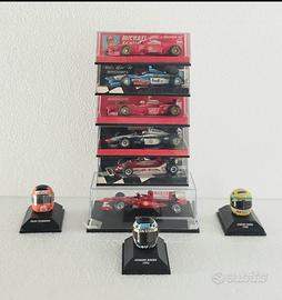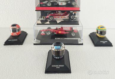 Lotto di sei Macchinine piu tre caschi...... MINICHAMPS-MATTEL F1/FORMULA ONE 1:43 [VERSIONE LANCIO FERRARI 1997] MICHAEL SCHUMACHER piu altre ,vedere foto , IN BOX PARI AL NUOVO MAI GIOCATE Per info chiedere