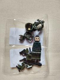 compatibile LEGO stampato su braccia gambe, sui fianchi una faccia armatura Mijolnir con casco, protezioni su braccia gambe e corpo, due armi.