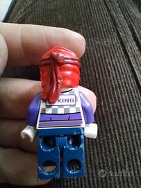 Minifigure originale LEGO del personaggio "The King", proveniente dal set Ultra Agents Infearno Interception. Il pezzo si distingue per il suo stile unico: maglia con dadi stampati, braccia viola e l'iconica bandana rossa che copre il volto. Sul retro del busto è presente la scritta "KING".