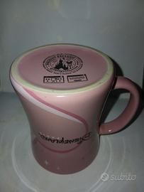 Tazza 3D in ceramica rosa con finitura lucida, sia internamente che esternamente, con Minnie in rilievo su un lato.