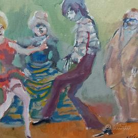 STREPITOSO DIPINTO AD OLIO SU TELA DI CM 50X35, CARATTERIZZATO DA UN INTENSO CROMATISMO E DA UN FORTE IMPATTO FIGURATIVO, DOVE, I DUE RAGAZZI, SI LANCIANO IN UNO SFRENATO TWIST, DA CUI PRENDE IL NOME IL DIPINTO. L'OPERA DI ALTISSIMA QUALITÀ ESECUTIVA, PROVIENE DALLA GALLERIA D'ARTE MODERNA "IL CASTELLO" (MILANO. VIA BRERA N. 16). TIMBRI, A RETRO : (GUIDO CONTE) FIRMA DELL'ARTISTA IN BASSO A DESTRA.ULTERIORE TIMBRO E FIRMA SUL RETRO DELLA TELA DELLA GALLERIA D'ARTE IL SELVAGGIO DI ROMA. IL DIPINTO È STATO ESEGUITO INTORNO ALLA FINE DEGLI ANNI SESSANTA. ARCHIVIO MACCARI.