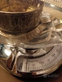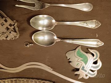 Un gruppo di vari elementi in argento marchiato, molti dei quali rotti o danneggiati, accumulati nel tempo. Alcuni, più antichi riparabili e di bella fattura, come il bracciale antico con greca o la spilla testina stilizzata di modernariato messicano. Peso indicativo: 100 grammi CONDIZIONI DI VENDITA: Gli oggetti presentati non si vendono separatamente. Le foto rappresentano gli oggetti così come venduti. Sono oggetti assolutamente originali e presentano i normali difetti di cose usate o antiche, come rotture, ammaccature, strisci o poca leggibilità dei punzoni. Si garantisce sulla lecita provenienza del bene. Non si può escludere la diversa taratura delle bilance, pertanto è normale considerare possibili, minime variazioni del peso tra bilance diverse. In alcuni casi si tratta di oggetti compositi (metalli diversi, legno, ecc.). Il peso indicato tiene conto del peso complessivo degli oggetti, come da foto. Non sarà accettata la restituzione, la quale prevede perdite per il venditore. Si prega di accertarsi precedentemente dell'interesse per il bene. Grazie