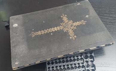 📘 Copertina rigida in tela nera con croce dorata e monogramma “IHS”