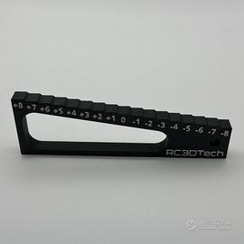 Strumento professionale per setup millimetrico (scala +8/-8). Progetto originale proprio, testato in gara e realizzato in materiale ultra-resistente (no flessioni). ✅ Scala in rilievo ad alto contrasto ✅ Design ergonomico con grip superiore ✅ Disponibile con banchetti 30x30 o 30x20