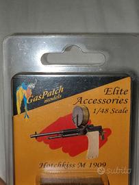 Mitragliatrice Hotchkiss M1909 Gaspatch Models scala 1/48. Installata sui caccia francesi Morane Saulnier Type N della Grande Guerra. Completamente in resina stampata, contiene due mitragliatrici da assemblare. Nuovo, confezione sigillata, completo di tutti i componenti, nessun danno come da fotografie.