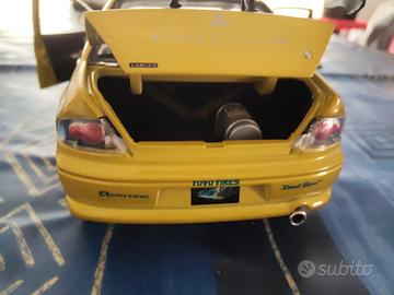 Vendo mitsubishi lancer evo di 2 fast 2 furious (ormai fuori produzione) della ertl 1/18, porte anteriori, cofano e baule apribili, l'unico difetto ha un piccolo segno sullo specchietto retrovisore come si vede da foto, senza scatola ma verrà imballato adeguatamente per non rovinarlo in caso di spedizione
