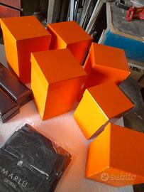 mix di custodie nuove collezioni Marlu. Porta collana 17x17. 2 porta bracciali 25x5. 40 sacchetti neri due misure 20x15 e 14x13. Fiocco blu. Porta orologi da esposizione in legno 27x24. 6 scatole arancioni 2 misure 18x10x10 e 15x9x9. 1 scatola con scomparti .