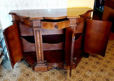 Mobile antico da ingresso con decorazioni intarsiate porte curve tutto in legno, le dimensioni sono larghezza 165 profondità 42 e altezza 106 vendo a soli euro 150 Tel.339 355 9827 Albino posso valutare per eventuale consegna.