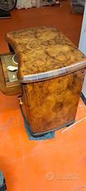 Perfetto mobiletto bar in radica anni 40/50. Completo con giradischi, nascosto in un cassetto ma estraibile, porta dischi laterali nascosti nella struttura. Specchietti interni perfetti. Esterno perfetto. Pur essendo un mobile vintage è perfettamente conservatoMisure contenute: Misure 60 x 43 di profondità x 73 di altezza.