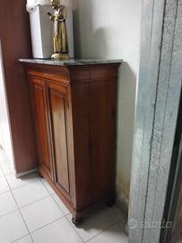 Mobile antico inizio 900 con tre ripiani e base in marmo. Misura cm 80 x 38 x 124 h, mentre la base in marmo misura cm 90 x 44. Tutto come da foto.