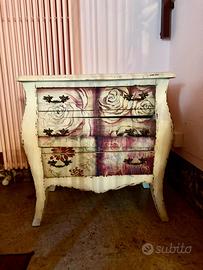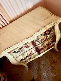 Mobile decorato bianco e floreale in legno con cassetti H 70 cm Larghezza 38 cm Lunghezza 67cm.