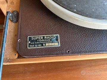 Mobile giradischi vintage brAun da restaurare con targhetta di produzione Super radio Torino n. 579 Misure 72 x 45 x h26 cm