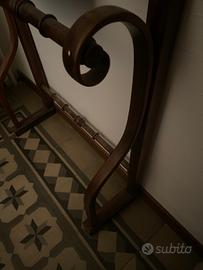 Originale appendiabiti Liberty (1890-1920) in Faggio Massello, con dettagli in legno curvato e specchio. Presenta nel corpo centrale ripiano e portaombrelli. Restauro recente, ottimi condizioni. Altezza 195,5cm Larghezza 69cm