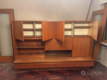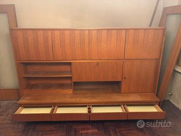 • Dettaglio Pregevole: Mobile Bar/Scrivania a ribalta nella sezione centrale (si apre per creare un piano d'appoggio, con specchio e scomparti interni - vedi foto).