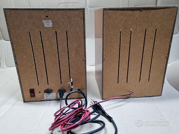 Mobiletto con autoradio (anni '70) composto da 2 casse audio in legno, con incassata un autoradio estraibile Autovox mod. ISOTTA AM -FM per ascoltarla