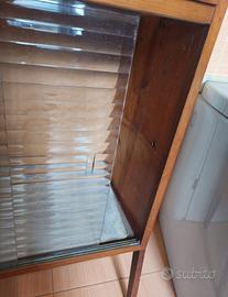 mobile vintage con cassetto in legno e due ante vetrinate scorrevoli altezza cm 86 lunghezza cm 61 Larghezza cm 31