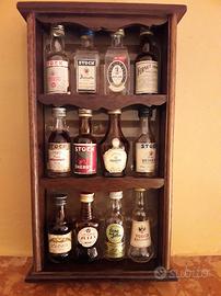 Mignon 12 da collezione con il mobiletto originale in legno, facevano parte delle cassette natalizie Stock 84 degli anni 70, all'interno anche la plastica modellata per il corretto posizionamento, tappo in ferro perfettamente sigillate -Altezza cm 35- larg cm 20-spessore cm 6,5 -gancio per appendere - Sul retro le bottiglie come da foto recano il contassegno di Stato di imposta fabbricazione e numero - nonostante la chiusura ermetica un paio di bottigliette sono un pò evaporate - info senza problemi - Grazie