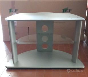 mobiletto NUOVO in legno, no plastica, ancora imballato e da montare di colore grigio con pianale intermedio in vetro. La foto è relativa al gemello che è stato montato per verifica.