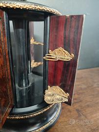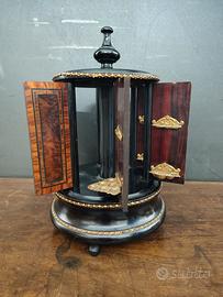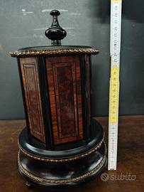 mobiletto porta sigarette ebanizzato inizio '900 con ante in radica. ottime condizioni altezza 29cm, diametro alla base 19cm prezzo trattabile