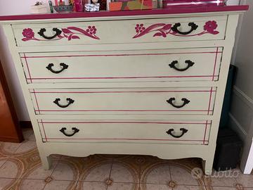 Cassettiera fatta a mano, primi novecento ridipinta colore ad acqua verdino, con piano in marmo marmo 145 euro