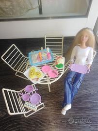 Il lotto comprende tavolo, sedie e accessori visibili in foto. La BarbieTye-die( Crea La Moda, anno 1998) è disponibile, in vendita a parte.