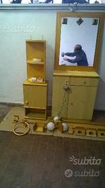 Set Completo di Mobili e Accessori per il Bagno. Composto da: Specchiera. Mobile grande. Mobile piccolo. Angoliera. Lampadario. Mensole varie. Porta cose varie. Porta asciugamani vari. Per i vari dettagli e caratteristiche Vedi le Foto. Tutto a soli....49 euro. Per ulteriori informazioni meglio telefonare al 3382808160 no sms grazie.