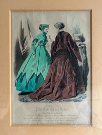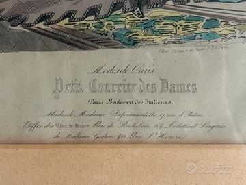 2 quadretti di stampe di moda, rivista francese, periodo 800.