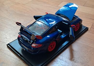 Primo modello porsche 911 gt3 rs blu metalizzato con i cerchi rossi rara la vendo con teca.