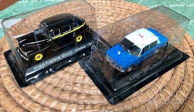 Sei modellini in scala 1/43, materiale die cast, appartengono alla collezione "Taxi dal Mondo" (conosciuta anche come Taxis du Monde o Taxis de collection), da DeAgostini. Nella loro confezione originale integra, condizioni perfette come da foto. Renault 12 Bogotà 1973, Lada Addis Abeba 1972, Fiat 600 Jolly Capri 1966, Mercedes 240D Beirut 1970, Gaz M-21 Volga Moscow 1955, Ford Fordor Sedan Istanbul 1947. Vendo in lotto ma è possibile anche la contrattazione su singoli modelli (non effettuo invio però sotto i venti euro). Possiedo l’intera collezione dei taxi che carico progressivamente in altre inserzioni, vedi vetrina.