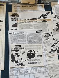 Vari modellini in kit di montaggio Revell in scala 1:72 praticamente nuovi nella buste originali con istruzioni e decalcomanie ancora da applicare. (alcune parti delle decalcomanie sono danneggiate a causa del tempo)