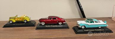 3 modellini di macchine d’epoca della Ford, curate in tutti i dettagli con pedana in plastica.