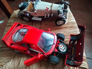 Vendo in blocco 5 automobiline come in foto. I modelli sono: Chevrolet Corvette 1957 Ferrari F40 1987 Mercedes Benz SSK con plastica parabrezza da riparare o rifare Alfa Romeo 2300 Spider 1932 Ferrari GTO 1984 Tutte le parti in movimento funzionanti. Non ho fotografato i fondi perché sono tutti pari al nuovo, se serve chiedete; non metto mano nello spolvero o pulizia perché non me ne intendo e non vorrei rovinarle, dunque le cedo così come sono (un pò impolverate) lasciandone la cura a chi è appassionato. Accetto proposte ragionevoli per il set completo di 5 pezzi.