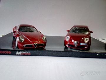 2)Alfa Romeo mito e alfa romeo 4 c - entrambi scala 1 43 - marca Mondo Motors - entrambi i modelli sono fissati su una base che volendo è facilmente removibile - euro 8,00 ;