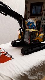 escavatore Volvo ec 220 el con attrezzatura per sfalcio erba nei canali, fatto di legno, per info 3389523708 su watsapp.