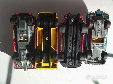 Condizioni dei modelli discrete, sono giocate e presentano sverniciature. Il camion Mercedes Bétaillère non ha il portellone laterale, mentre il camion dei pompieri è privo di lancia posteriore. VEDERE FOTO