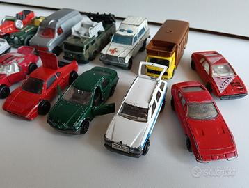 Lotto di 12 macchinine in metallo Majorette (anni '80-'90), una Maisto e una Welly: - Citroën Visa Chrono N.201 (1983) - Citroën XM N.254 (1992) - Porsche 911 Turbo N.209 (1986) - Ferrari GTO N.211 (1987, cofano motore apribile) - BMW 325i(E36) N.257 (1993) - Mercedes-Benz 300 TE N.250 (1992) - Excalibur N.267 (1981) - Morgan Plus 8 N.261 (1983) - Ford Econoline N.270 (2000) - Camion Missile Launcher N.2332 (Sonic Flashers, 1990) - Jeep Cherokee Ambulance N.269 (1980) - Mercedes-Benz Bétaillère (1978), scala 1/100 - Maisto Ferrari 365 GTB Daytona - Welly Lotus Esprit S1 Condizioni dei modelli discrete, sono giocati, presentano sverniciature ed alcuni hanno difetti (parti mancanti). Ruote integre. VEDERE FOTO Prezzo per l'intero lotto. Per ulteriori informazioni e foto non esitate a chiedere. Disponibile per consegna a mano in zona Almese (TO). Altri modellini disponibili (Hot Wheels, Majorette, Bburago, Polistil, Matchbox,.... guardate tra i miei annunci)