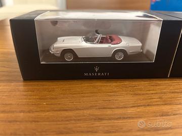 Modellino bianco: riproduzione in scala 1:43 della Maserati Mistral Spyder del 1963. Il modellino è fornito su base originale con logo e descrizione.