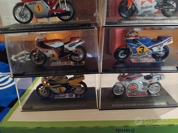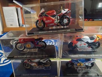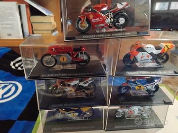 Collezione di modellini di moto da competizione, riproduzioni fedeli di campioni del motociclismo. - Ducati 996 Carl Fogarty 1999 - MV Agusta 500 Giacomo Agostini 1967 - Yamaha YZR500 Wayne Rainey 1991 - Suzuki RG500 Barry Sheene 1977 - Honda NS500 Freddie Spencer 1983 - Yamaha YZR500 Kenny Roberts 1979 - Suzuki RGV500 Kevin Schwantz 1993
