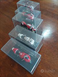 I modellini sono in ottime condizioni, sempre tenuti in esposizione nelle teche. Le teche presentano lievissimi segni da scaffale ma proteggono perfettamente il contenuto.