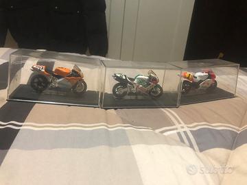 Come da foto cedo 6 modellini moto perfetti nessun tipo di difetto, i modellini sono sempre stati nella sua teca, se necessita invio ulteriori foto massima serietà.