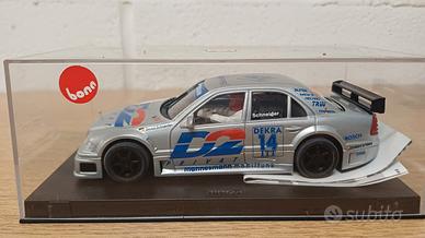 N. 5 slot car anni 90 nuove, solo esposte, mai messe in pista: 1 Ferrari 512S Berlinetta Fly, 1 Mercedes CLK GTR Ninco, 1 Mercedes DTM Ninco, 1 BMW 318i Westminster Scalextric ed 1 Ford Escort Cosworth Panasonic Scalextric. Le Ninco sono complete dei pick up di ricambio. La Fly è corredata degli stickers originali da applicare. Tutte con le vetrinette o confezioni originali.