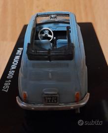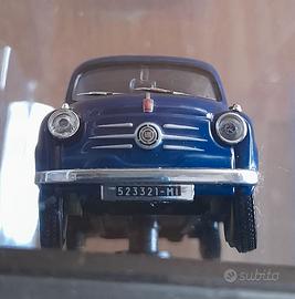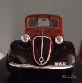 Tre modellini statici FIAT d'epoca, prodotti ufficiali su licenza Fiat Group: FIAT nuova 500 (1957) colore celeste versione con tetto apribile (aperto), su base espositiva nera. Lunghezza automobilina 7 cm FIAT 600 (1957) colore blu, made in China, prodotto ufficiale (Official Product) con ologramma di autenticità, ancora sigillata. Lunghezza 7 cm FIAT Nuova Balilla 1100 (1937), colore amaranto e nera, su base espositiva nera. Lunghezza 10 cm Articoli da collezionismo, in buone condizioni. Vendita anche singolarmente: Fiat 500 €11, Fiat 600 € 11 e Fiat Balilla € 16