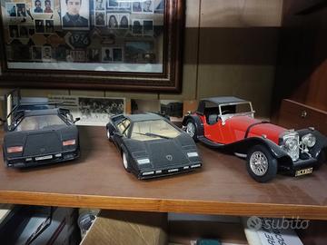 Modellini Burago scala 1/18 Ferrari F40 ( 1987 ) Ferrari 288 GTO ( 1984 ) Ferrari Testarossa ( 1984 ) Ferrari 250 Testarossa ( 1957 ) Lamborghini Countach ( 1988 ) Jaguar SS 100 ( 1937 ) Modellino Polistil scala 1/18 Lamborghini Countach