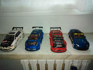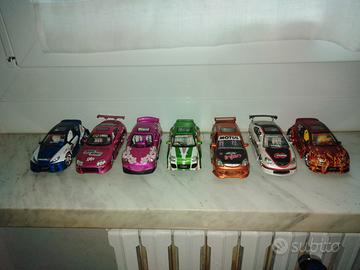 vari modellini tuning scala 1:55 marca Kentoys 2003 : toyota supra , opel astra v8 , 2 nissan skyline gtr , peugeot 206/207 , mercedes clk amg , mazda rx7 , nissan 350 z nismo , bmw m3 10 euro l'uno ; scala 1:32 marca Saico : 1 peugeot 206 ( bianca e blu venduta ), toyota supra , mazda rx8 , renault clio , honda civic , honda integra 15 euro l'uno ; scala 1:24 marca Kentoys 2003 hanno le luci sotto scocca nei fari e nello scarico ma non tutti funzionano perchè batterie scariche : mitsubishi lancer evolution 8 con led blu funzionanti , toyota celica led non funzionanti , nissan silvia led rossi funzionanti , mazda mx-5 led non funzionanti 35 euro l'una ; solo contatti telefonici sms , chiamate , whatsapp