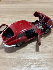 Modellino Corgi Toys 1/43 Jaguar E Type 2+2 del 1968 funzionante in tutto : sospensioni , portelli , cofano ant e post , sedili anteriori e ribaltina posteriore. Vernice con segni del tempo.