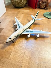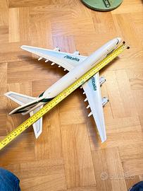 Modellino Alitalia Misure: Lunghezza 62cm Apertura alare: 60cm Condizioni perfette (unica cosa sistemata è la ghiera di uno dei 4 motori, vedi foto). Ritiro gratuito su Roma o spedizione con subito