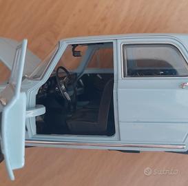 Modellino in scala 1:24 della iconica Alfa Romeo Giulia 1600 Super del 1965 prodotta da Metro. Modello curato nei dettagli: il cofano anteriore, le portiere anteriore e il baule posteriore sono apribili, permettendo di ammirare gli interni e il vano motore ben particolareggiati, la verniciatura azzurro pastello è lucida e le cromature in buone condizioni con base espositiva originale. La ruota anteriore destra che si era staccata è stata riparata.